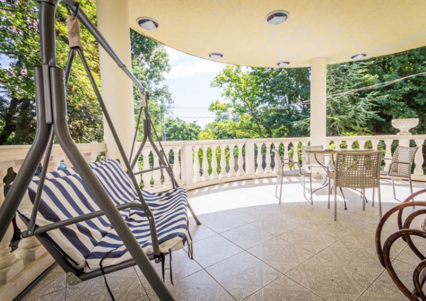 A ház 3-szintes, a felső két szinten egy-egy nappali-étkező, kényelmes konyha, fürdő és össesen 7 hálószoba található. Az alsó szinten garázs, szauna és fitnesz-helyiség, iroda és kiszogáló helyiségek kaptak helyet. Minden szinten nagy, jól használható, panorámás teraszok találhatók, a kertben medence és kerti tárolók gondoskodnak a családbarát területről.