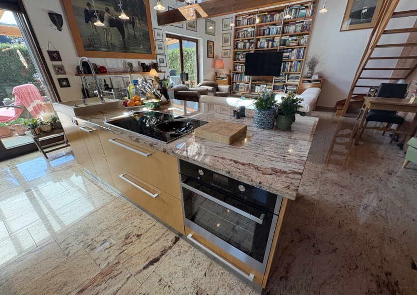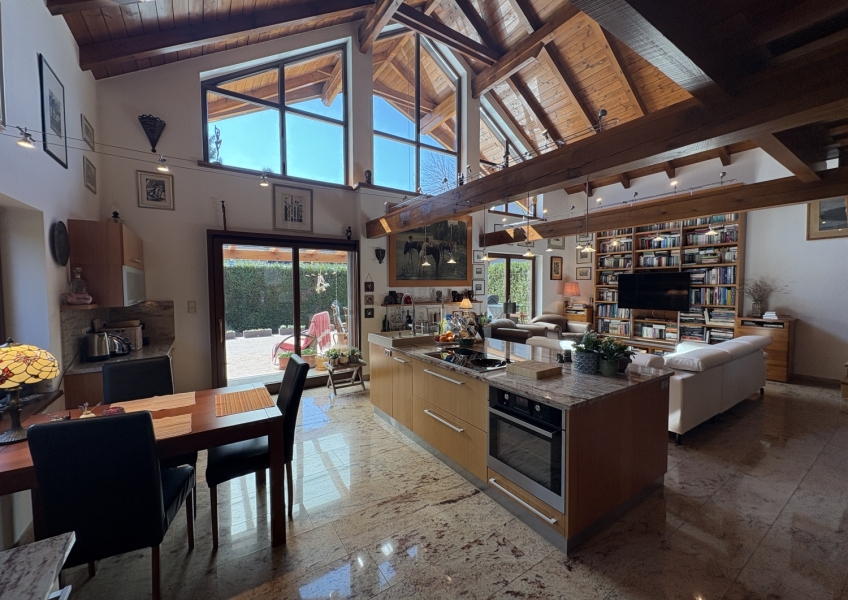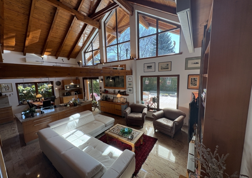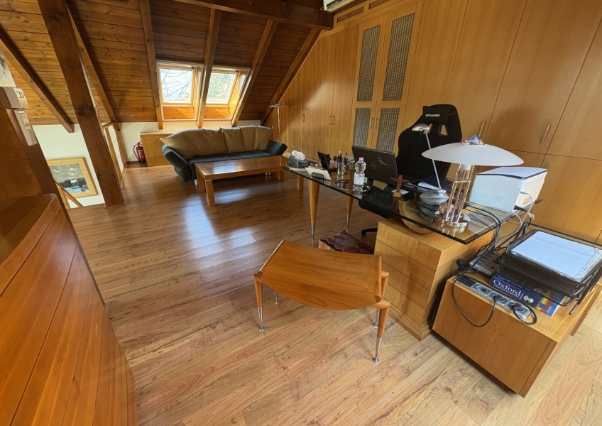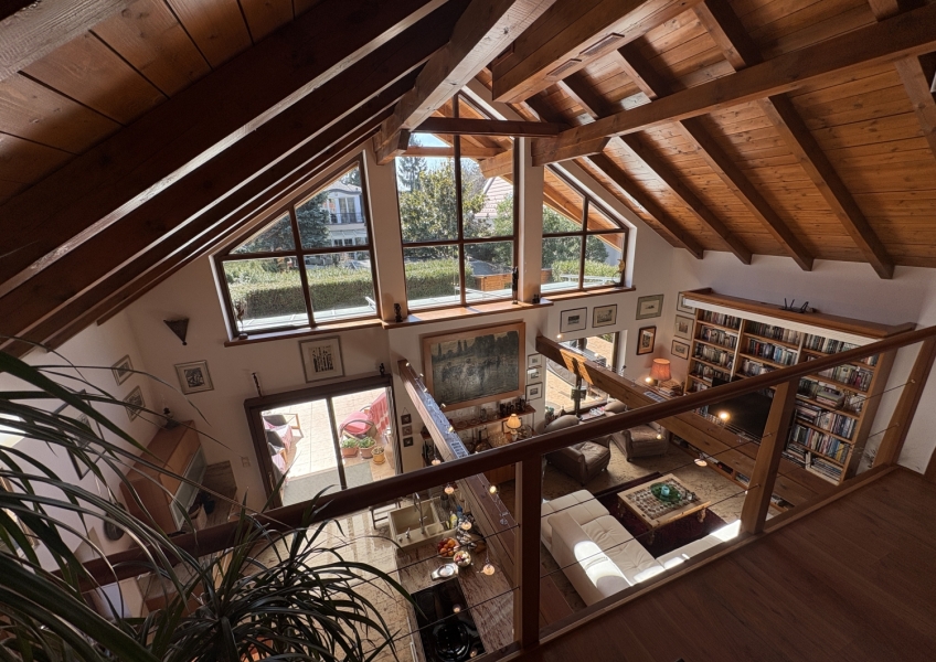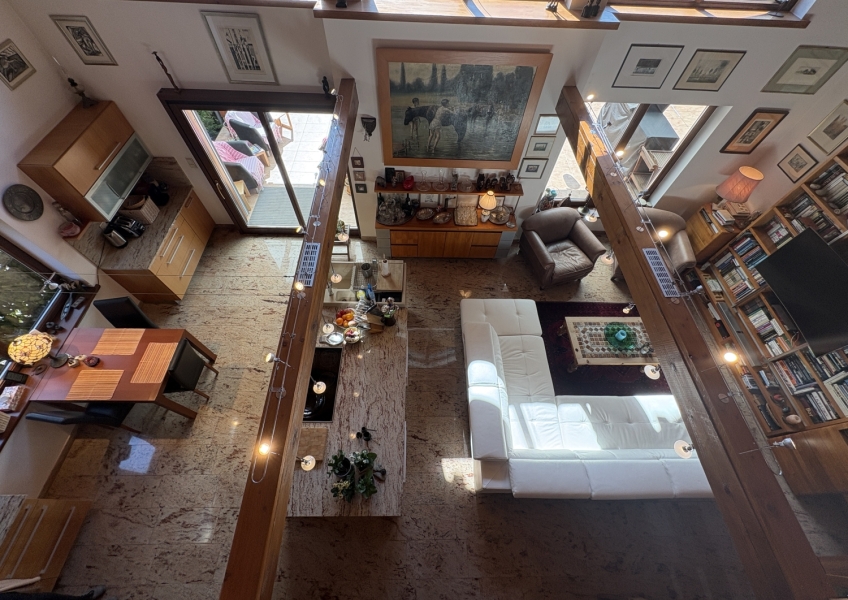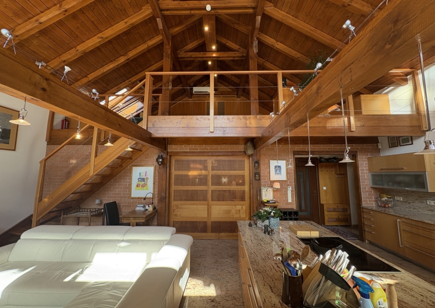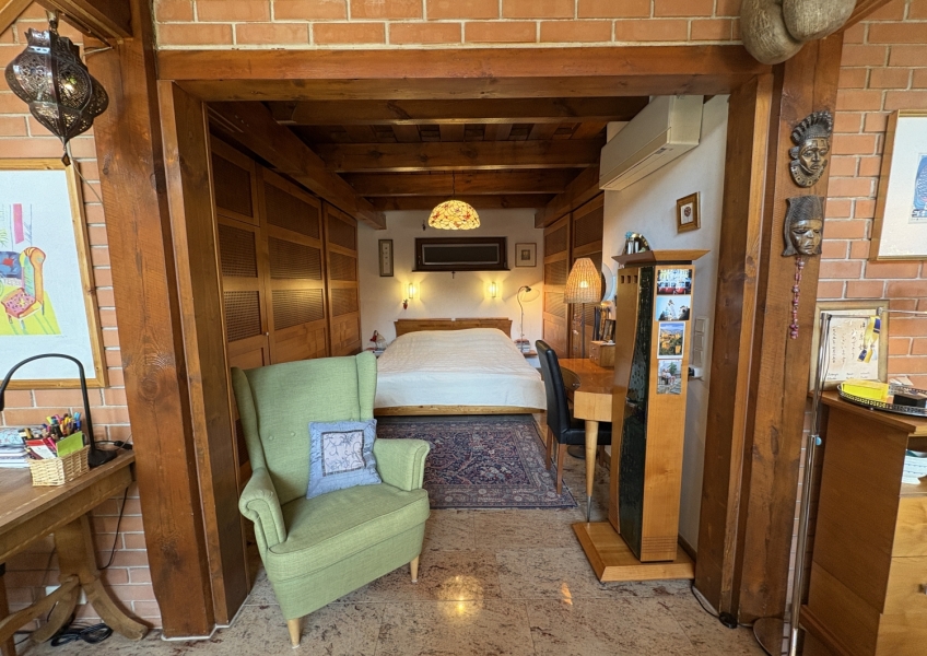 We offer for sale in Rómeifürdő, in the most pleasant suburban part of the III. district, near the Danube, but outside the flood-zone, in a great street, a unique Fachwerk house built in 2009. The sun-drenched, south-facing living-cooking-dining area with its large glass surfaces is connected to an 80 sqm terrace, which is partly covered and has a motorized sun-blind, so the exterior and interior spaces are perfectly integrated. On the entrance level there is a bedroom, a walk-in wardrobe and a bathroom in addition to the living space, while on the gallery there is an additional room that can be fully detached, divided into two rooms or further extended. The kitchen is fitted with quality wooden furniture and top of the range appliances.