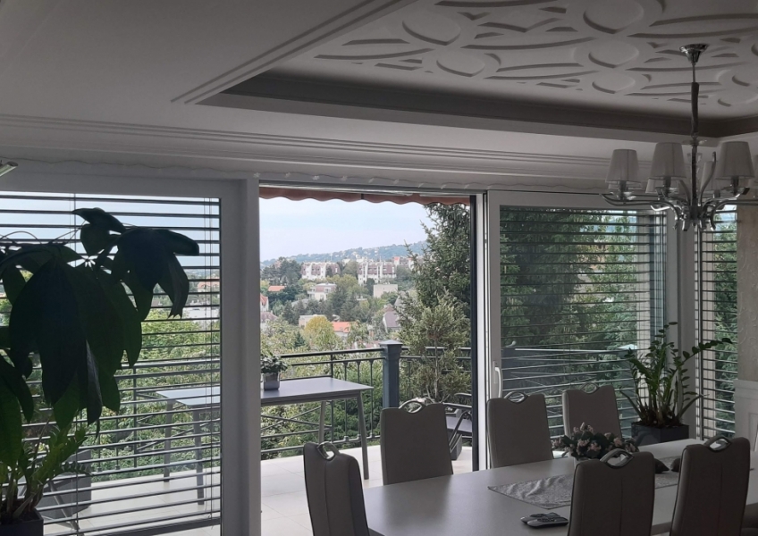 An elegant villa in the II. district, in one of the most popular parts of Budapest, on a southern hillside, in a low-traffic, calm, quiet, family-run area, next to elegant buildings, in an exclusive area popular with embassies, far from the city's noise and polluted air, close to nature reserves, yet only 3 km away from the city center with excellent public transport links, is for sale. The building is a 550 sqm American-style, representative, and classic-looking, 4-story, premium-category, luxury villa with lots of extras, and an eternal panorama.