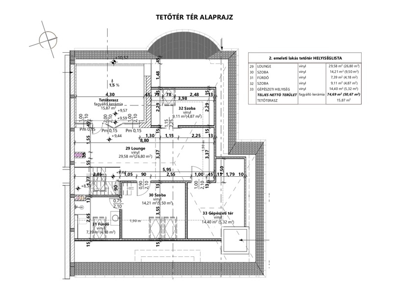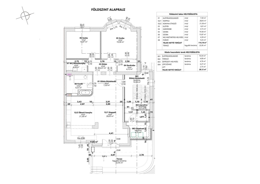 | Egyéb helyiség | gardrób, étkező, gépészeti helyiség |
