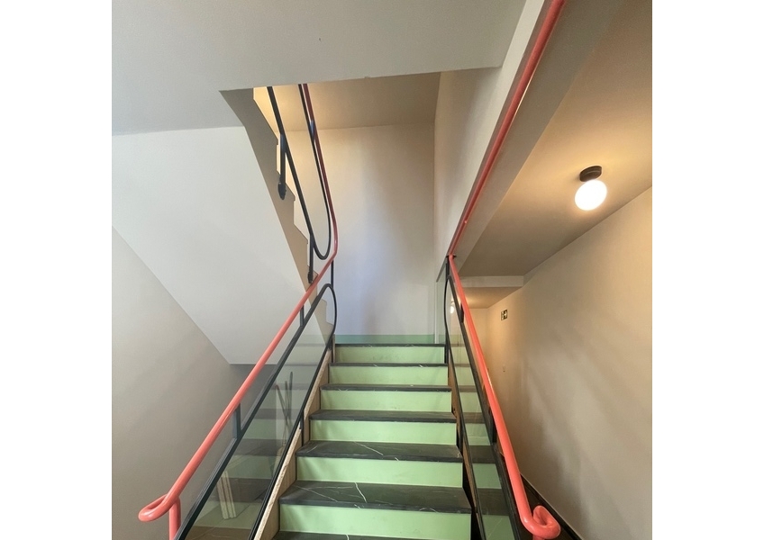 A belső építész által a legújabb trendek szerint kialakított színes konyhák és a lámpatestek, a Bauhaus korszakhoz illő lekerekített falak és boltívek különleges hangulatot adnak a villának.
